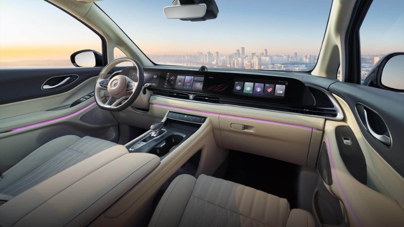 المقصورة الداخلية في فويا دريم ليست مجرد مساحة قيادة، بل جناح فاخر متنقل يعكس أقصى درجات الراحة والابتكار. تأتي مزوّدة بشاشة عدادات رقمية بالكامل بقياس 10.25 بوصة، إلى جانب شاشة ترفيه كبيرة للراكب الأمامي بقياس 15.4 بوصة، وسقف بانورامي يزيد من الإحساس بالرحابة والانفتاح.