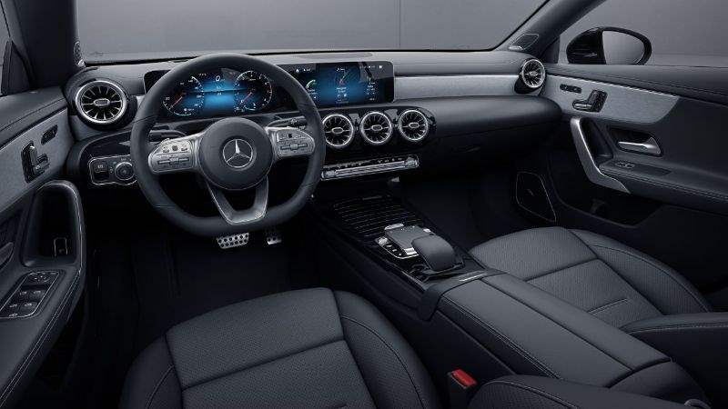 مقود رياضي متعدد الوظائف و مقاعد امامية للتعديل كهربائيا و عجلة قيادة عجلة من الجلد الطبيعي و مرايا خارجية قابلة للطي كهربائيا و اضاءة العتب كهربائيا و مقبس USB و وحدة عرض رقمية قياس 10.25 بوصة و اخري باللمس قياس 10.25 بوصة كما تحتوى ايضا على MBUX نظام متعدد الوسائط وخاصية الشحن اللاسلكي و تحتوي على عجلات مقاس 18 و سقف بانوراما متحرك و مخارج تكييف الهواء بتصميم رياضى و باقة progressive وتكييف هواء أوتوماتيكي