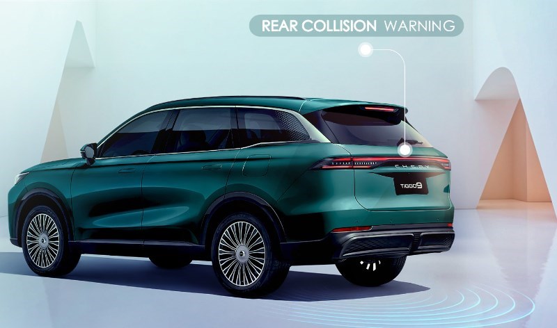 تعكس شيري تيجو 9 طابعًا رياضيًا فاخرًا من خلال تفاصيل تصميمها الخارجي المتقدمة، حيث تأتي مزودة بجنوط سبور مقاس 20 بوصة. وتُجهز بمرايا جانبية كهربائية الطي ومدفأة لضمان رؤية واضحة في الظروف المختلفة، بالإضافة إلى مقابض أبواب مخفية تبرز الطابع الديناميكي للسيارة. كما نجد مصابيح LED الأمامية والخلفية، مع إضاءة نهارية DRL تضيف لمسة من الأناقة وتعزز من عوامل الأمان. وفتحة سقف بانورامية تتيح تجربة قيادة ممتعة ومفتوحة.