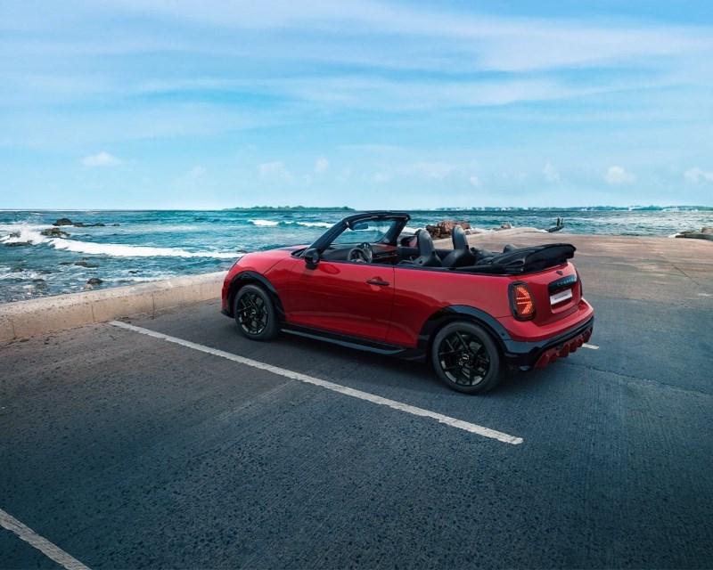 من النظرة الأولى، يُمكن التعرف على هوية MINI الكلاسيكية التي حافظت عليها Cooper Convertible مع واجهة أمامية وشبك تهوية أسود لامع بتصميم ثماني الأضلاع، ومصابيح LED دائرية عصرية. وتضفي جنوط John Cooper Works قياس 17 بوصة مزيدًا من الطابع الرياضي، إلى جانب الشرائط السوداء على غطاء المحرك، وأغطية المرايا السوداء، وعاكس الهواء الخلفي الجديد.