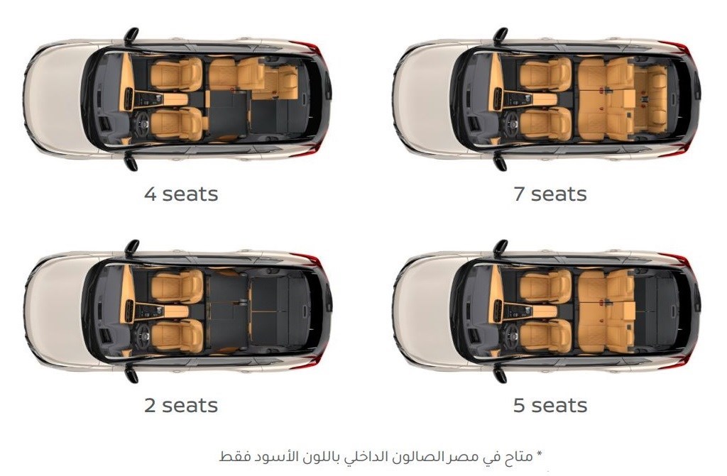 بالإضافة إلى ما سبق وبفارق 300 ألف جنيه، تتمتع الفئة الثانية ذات تشكيل السبع مقاعد بـ ضوء قيادة متأقلم مع الظروف المحيطة، وخاصية فتح باب الشنطة كهربائيًا + حساس للقدم، جنوط مقاس 19 بوصة + غطاء إطارات..