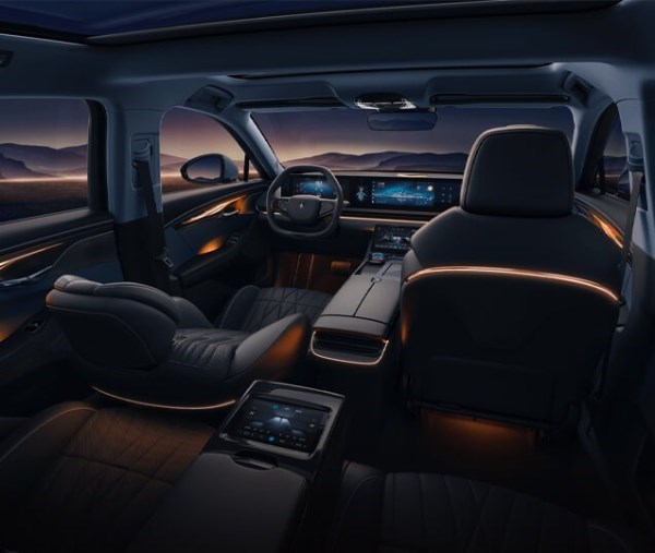 وتبرز جودة المواد المستخدمة داخل المقصورة، حيث تم تغليف المقاعد بجلد Dinamica الفاخر، وجميعها مزودة بخواص التدفئة والتهوية والمساج. ويتوفر للسائق تحكم كهربائي بـ12 وضعية، و8 وضعيات للراكب الأمامي، إضافة إلى دعم كهربائي للأرجل في مقاعد الصف الخلفي الفاخرة المخصصة لكبار الشخصيات (VIP).ولتعزيز التجربة الذكية، تشمل السيارة تقنيات متقدمة مثل نظام التعرف على الوجه (Face ID)، والتحكم بالإيماءات، وتقنية الصوت الذكي رباعي المناطق، فضلًا عن نظام دخول ذكي بدون مفتاح خاص بالسائق، وفتحة سقف بانورامية رحبة، وتعليق هوائي متطور مزوّد بنظام CDC للتحكم التكيّفي في راحة الركوب.