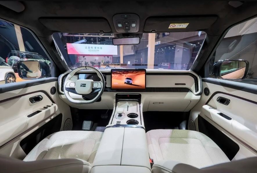 تتوفر مقصورة السيارة باختيارين كلاهما بثلاثة صفوف من المقاعد، ولكن إحدى الفئتين بتشكيل سبعة مقاعد (2+3+2)، والأخرى بستة مقاعد (2+2+2).. ويمكن الاختيار بين اللون الأبيض أو الأسود أو البرتقالي.. وبالنسبة لتجهيزاتهما فتتضمن: مفتاح تحكم عن بعد، تطبيق هاتفي للتحكم في السيارة عن بعد، مفتاح بلوتوث بالهاتف، دخول بدون مفتاح للأبواب الأربعة وباب الشنطة، غلق أوتوماتيك للأبواب عند التحرك، عجلة قيادة متعددة الوظائف ومكسوة بالجلد، ضبط عجلة القيادة يدوياً في 4 اتجاهات + خاصية تدفئة، باور ستيرنج كهربي EPS، أنظمة قيادة (Rock /Snow /Mud /Sand /Wade)، رصد العمق عند خوض تجمع مياه، وضع المقطورة، شاشة وسطية تعمل باللمس للترفيه وعرض المعلومات مقاس 15.7 بوصة، شاشة ترفيه للمقاعد الخلفية تعمل باللمس مقاس 15.7 بوصة قابلة للإمالة، شبكة اتصال بيانات داخلية، نظام صوت محيطي مكون من 14 سماعة..