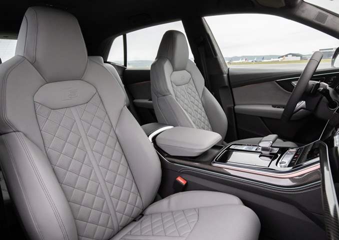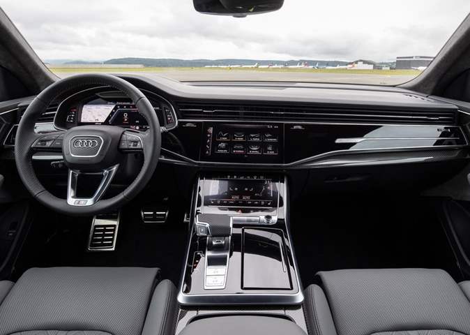 ومن تجهيزات الترفيه والملاحة في أودي Q8: شاشة ملاحة مع استجابة باللمس – شاشة علوية تعمل باللمس مقاس 10.1 بوصة – شاشة سفلية تعمل باللمس مقاس 8.6 بوصة – صندوق هاتف أودي – عدادات رقمية مقاس 12.3 بوصة – نظام صوتي من 17 مكبر صوت.