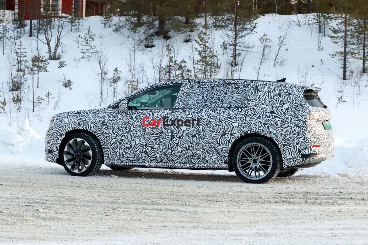 تم رصد السيارة ذات الثلاثة صفوف أثناء اختبارها في شمال السويد، والتي تم إخفاء ملامحها أسفل الأغطية المموهة، والتي تتبنى لغة التصميم الجديدة "Modern Solid" للشركة، والتي ظهرت لأول مرة في طراز "إلروك Elroq" الكهربائية الأصغر حجما و"إنياك Enyaq" التي تم تحديثها مؤخرا.