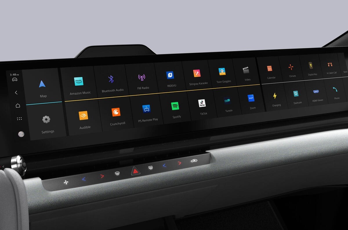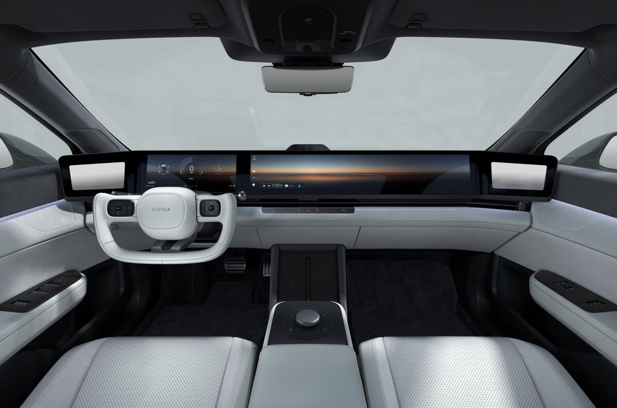تتضمن لوحة القيادة عجلة قيادة مميزة بشكل غير مكتمل، وشاشة بانورامية بحجم كبير والتي حصلت على نظام ترفيه وعرض بيانات قابل للتخصيص كما يمكن تشغيل الشاشة من خلال خلال نظام التحكم الصوتي Afeela Personal Agent، وستدعم عدد من التطبيقات من بينها Spotify وTikTok وZoom.