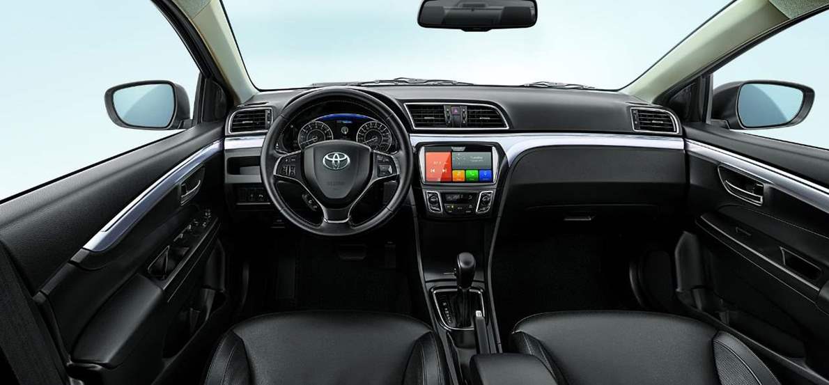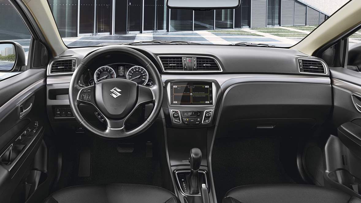 في "سياز".. تكون التجهيزات الداخلية في فئة GLX الأعلى تجهيزًا عبارة عن فرش بالكامل من الجلد، مع مسند يد خلفي وفتحات تكييف خلفية ومدخل USB.. أما نظام الترفيه فيبدأ بشاشة وسطية بقياس 7 بوصة، تدعم التوصيل مع الهاتف الذكي من خلال Apple CarPlay و Android Auto.. وإمكانية تشغيل السيارة بدون مفتاح (Start/Stop Engine).